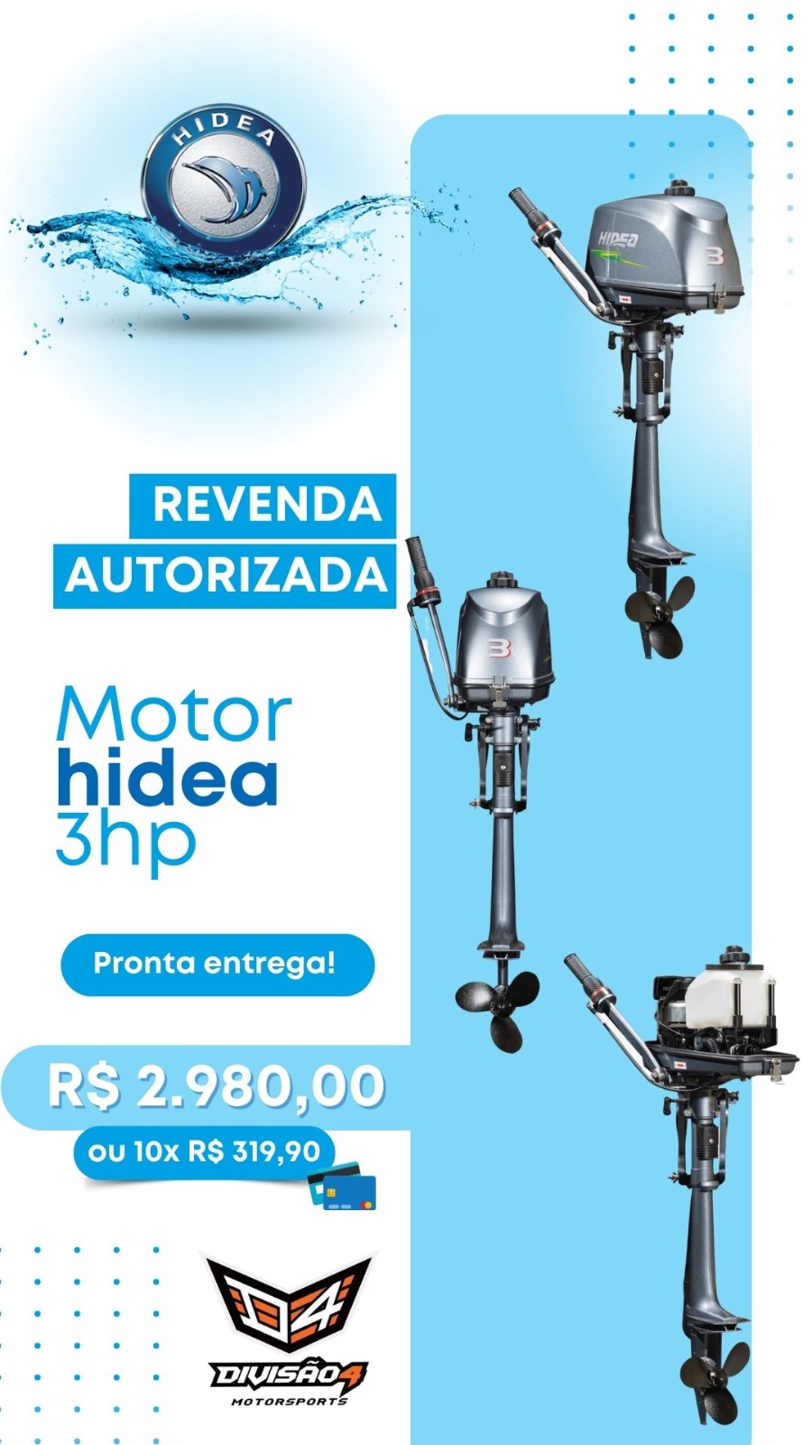 Motor de Popa Hidea 3 hp (2 tempos) – Pronta entrega