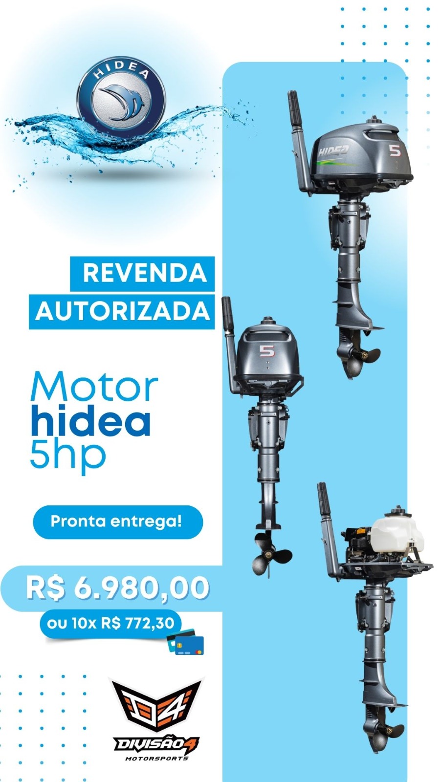 Motor de Popa Hidea 5 hp (2 tempos) – Pronta entrega